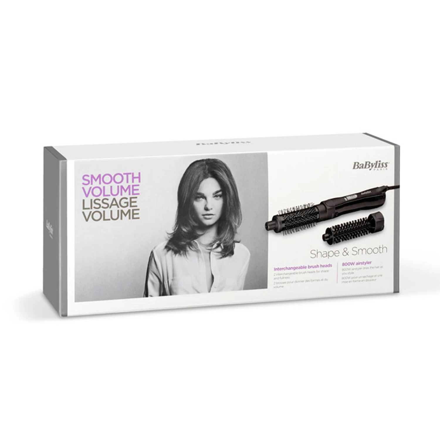 Die leistungsstarke Babyliss Shape and Smooth 800 Watt Warmluftbürste mit zwei auswechgselbaren Aufsätzen für das perfekte Styling.