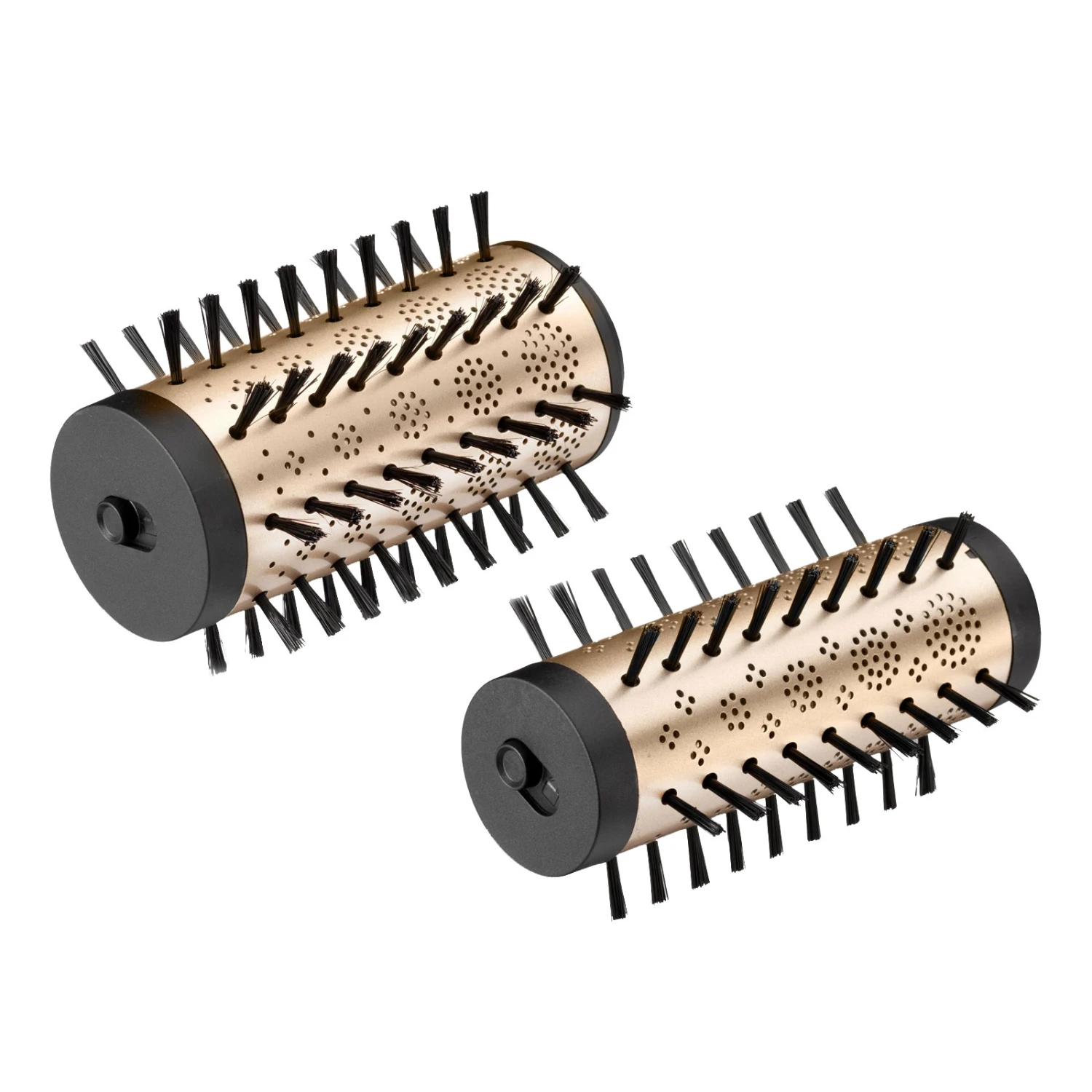 | Wählbare Drehrichtung Wähle die Rotationsrichtung und halte den Knopf gedrückt Stähne für Stähne. | 40mm rotierende Rundbürste Kleine rotierende Rundbürste mit Keramik-Beschichtung und weichen Borsten eignet sich ideal zum Stylen von Kurzhaarfrisuren, Stufen und Pony-Frisuren. |
