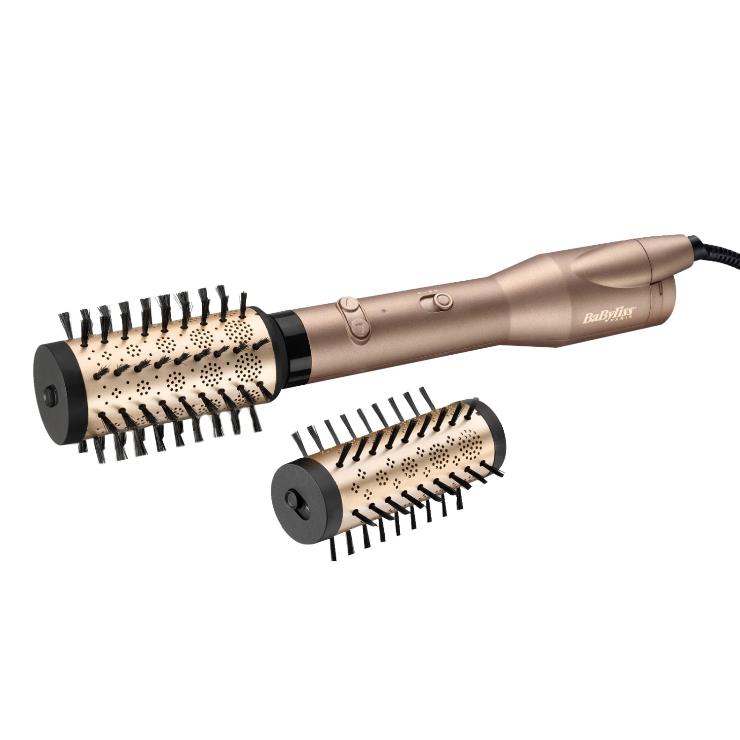 Verwende die große Rundbürste mit weichen Borsten für geschmeidiges Volumen und geschwungene Formen. Ideal geeignet für längeres Haar.