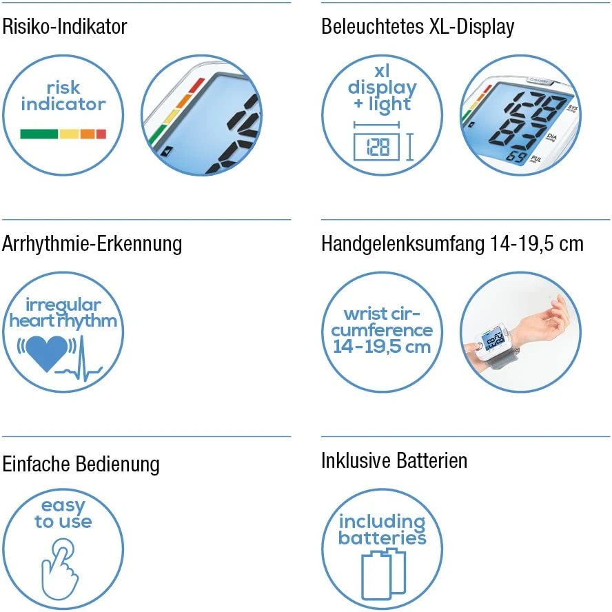 - Manschettengröße für Handgelenksumfänge von 14 – 19,5 cm