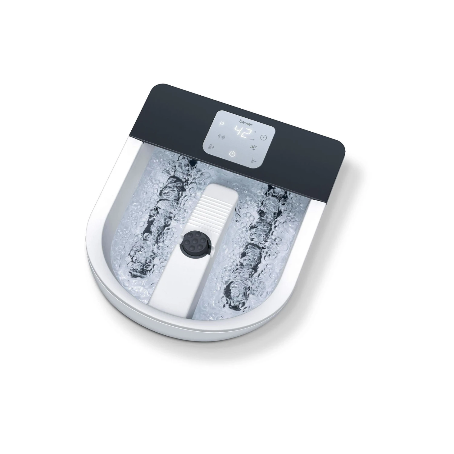 - Leistungsstarke Wasserheizung in 8 Stufen (34-48 °C)