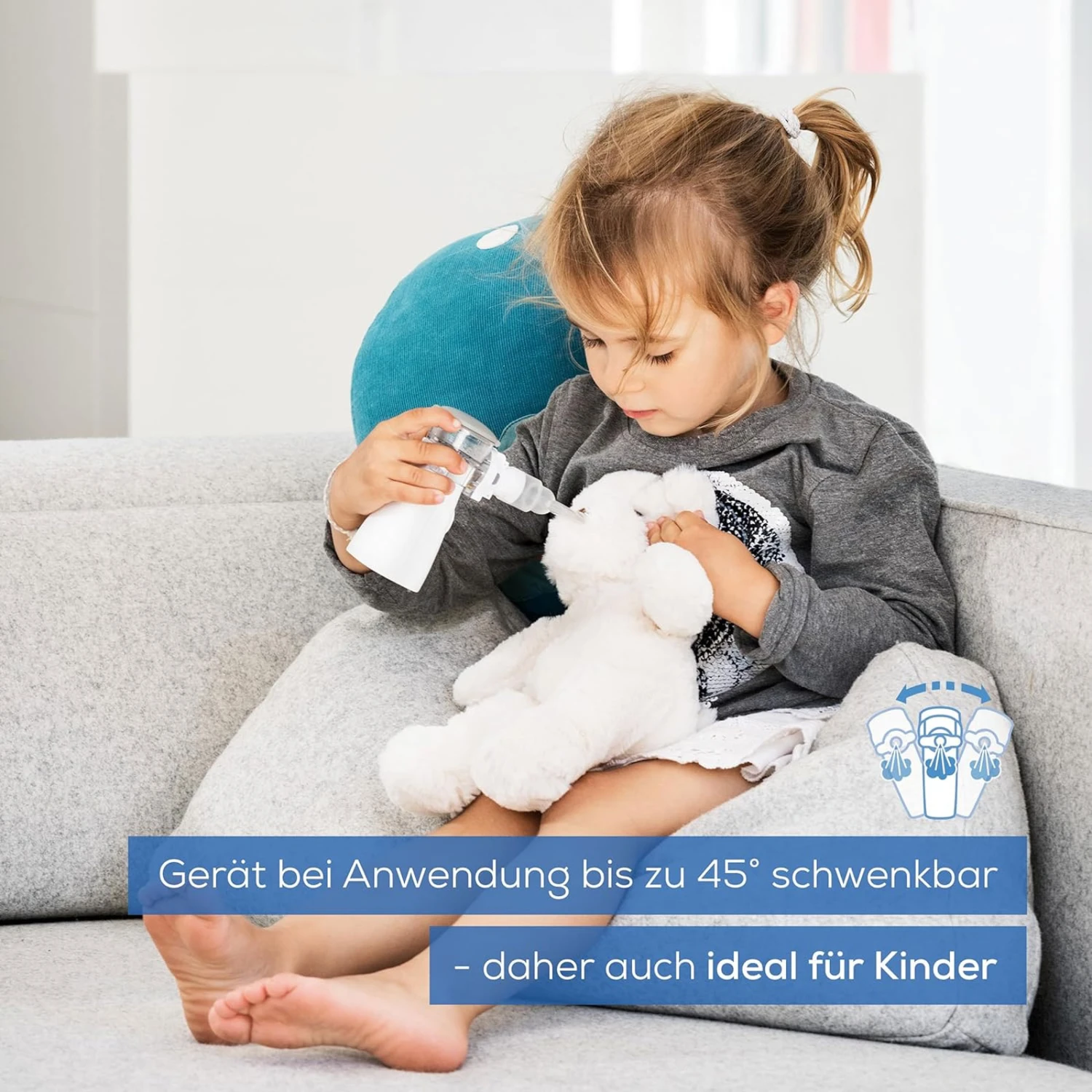 - Das akkubetriebene Inhalationsgerät kann bis zu 3,5 Stunden verwendet werden, hat einen flüsterleisen Betrieb und ist dank der schwenkbaren Funktion von bis zu 45° auch ideal für Kinder und für unterwegs