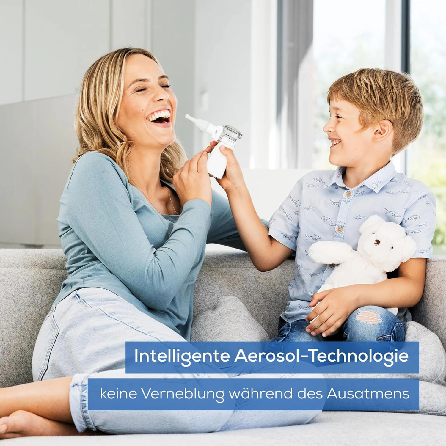 - Die intelligente Aerosol-Technologie sorgt für eine effektive Anwendung, die die Verneblung während des Ausatmens stoppt und durch die Selbstreinigungsfunktion wird eine hygienische Verwendung ermöglicht