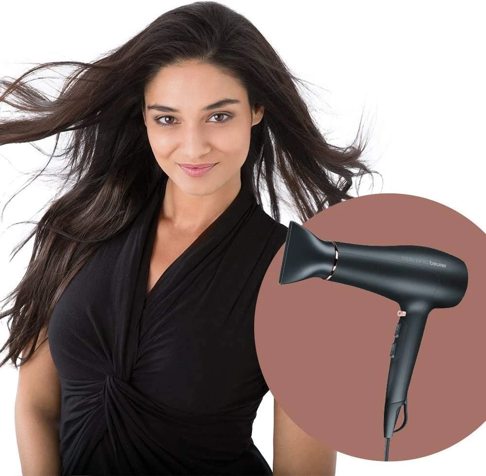 Mehr als nur Haare föhnen – die Triple Ionic Funktion Ionen-Technologie in 3 Stufen für individuelles Styling und glänzendes Haar. Mit 3 Heizstufen und 2 Gebläsestufen können Sie die Intensität individuell auf Ihre Haare einstellen.