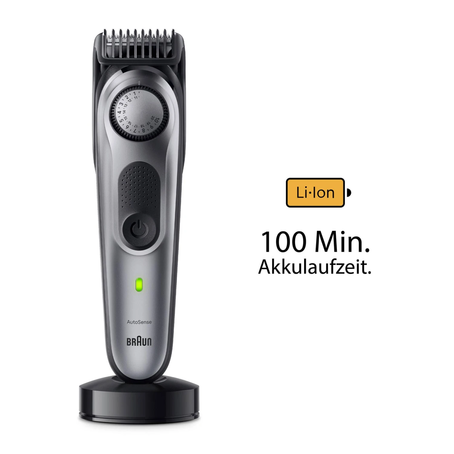 | Gutes Design ist einfach Braun-Produkte sind für eine einfache Verwendung konzipiert. Auf Knopfdruck erkennt der AutoSensing Motor Ihren Bartwuchs und passt die Motorleistung an Ihre Bartdichte an, wodurch selbst die dicksten Haare einfach getrimmt werden können. |