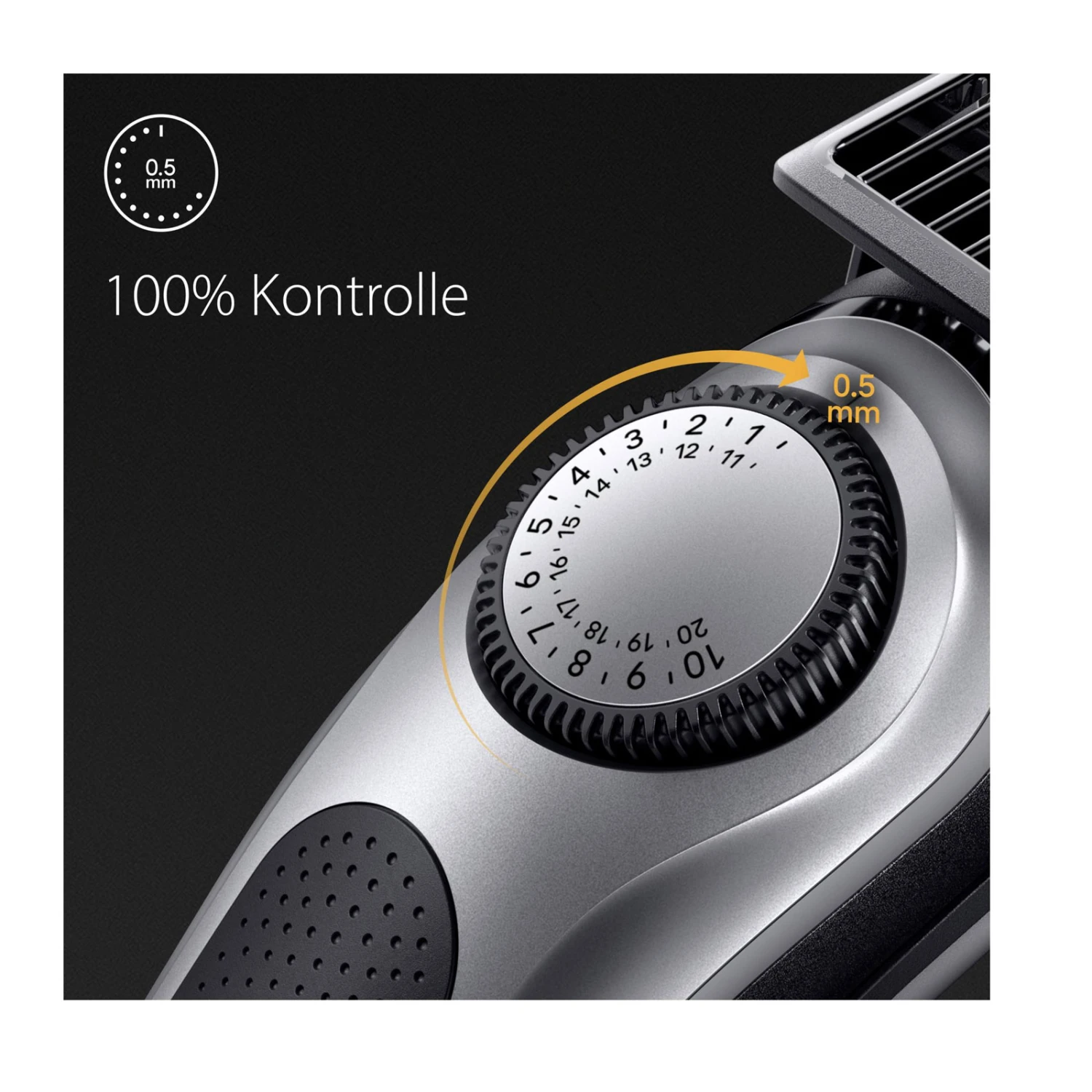 | Wählen Sie aus 40 Längeneinstellungen In präzisen 0,5-mm-Schritten mit dem Präzisionsrad. Präzision und 100% Kontrolle leicht gemacht. |