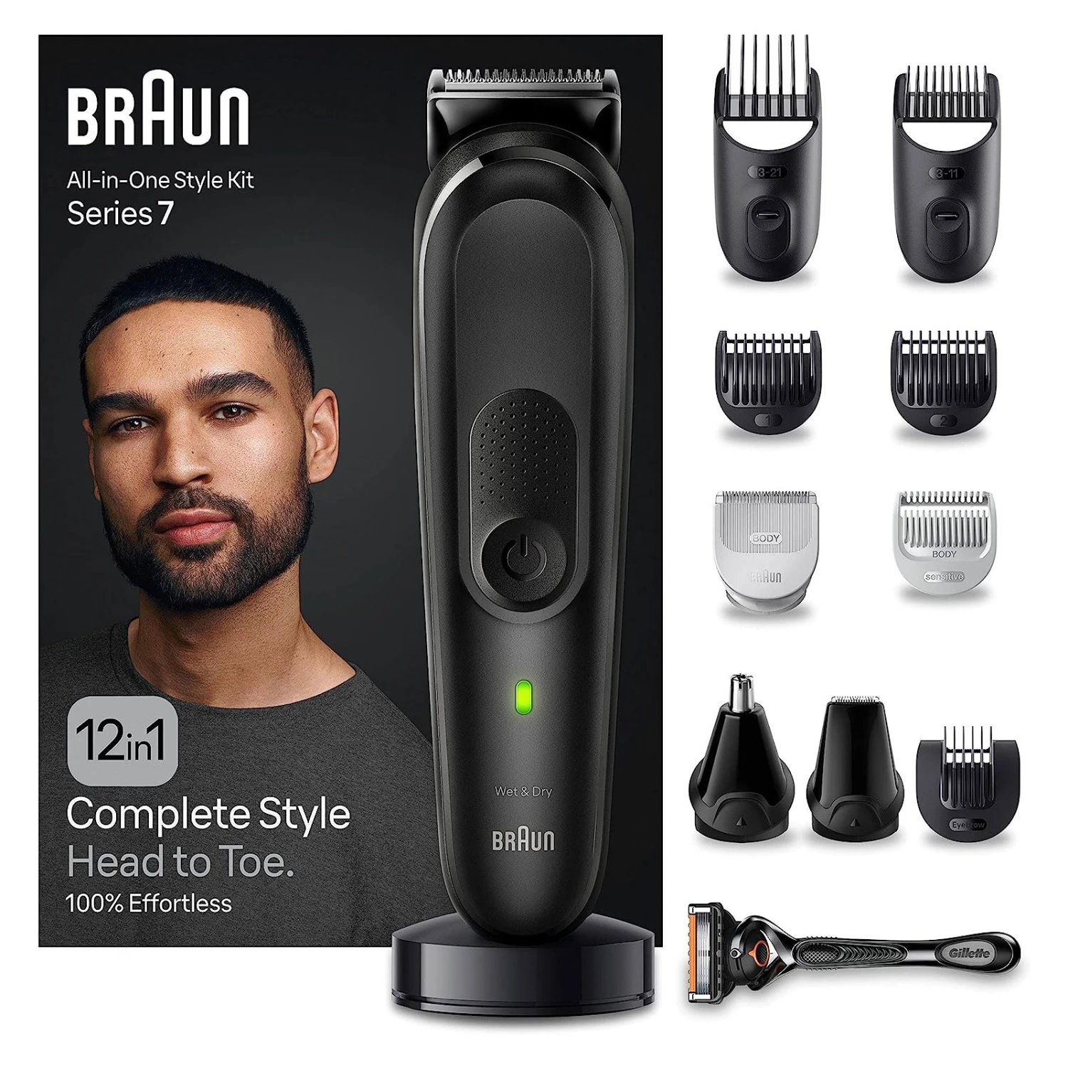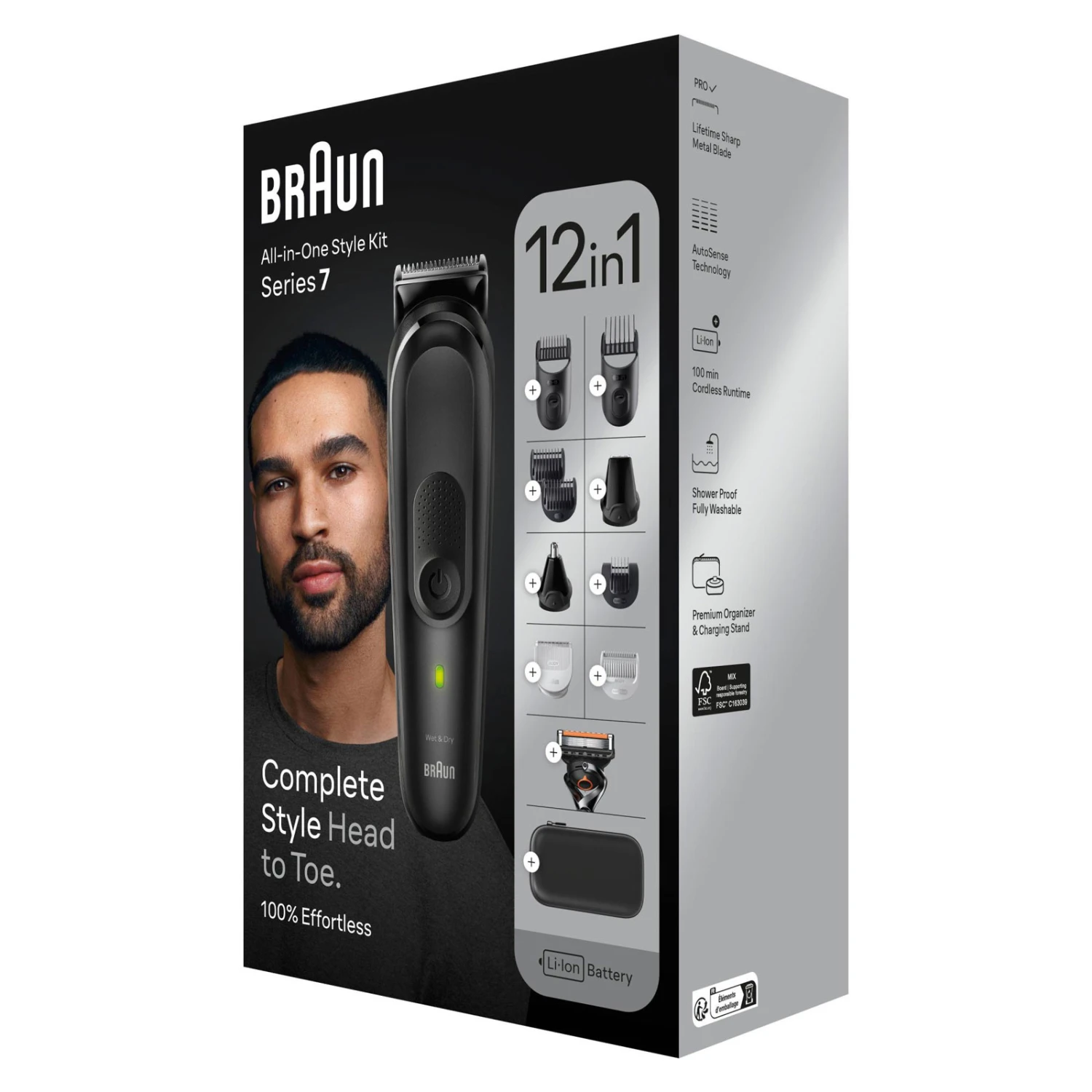 | Das 12-in-1 Styling Set von Braun für die Körperpflege von Kopf bis Fuß Barttrimmer, Bodygroomer, Haarschneider, Haarschneidemaschine in einem – Ausgewählte Tools zum Trimmen von Bart-, Ohren- und Nasenhaaren, zum Haare schneiden und Bodygrooming. |