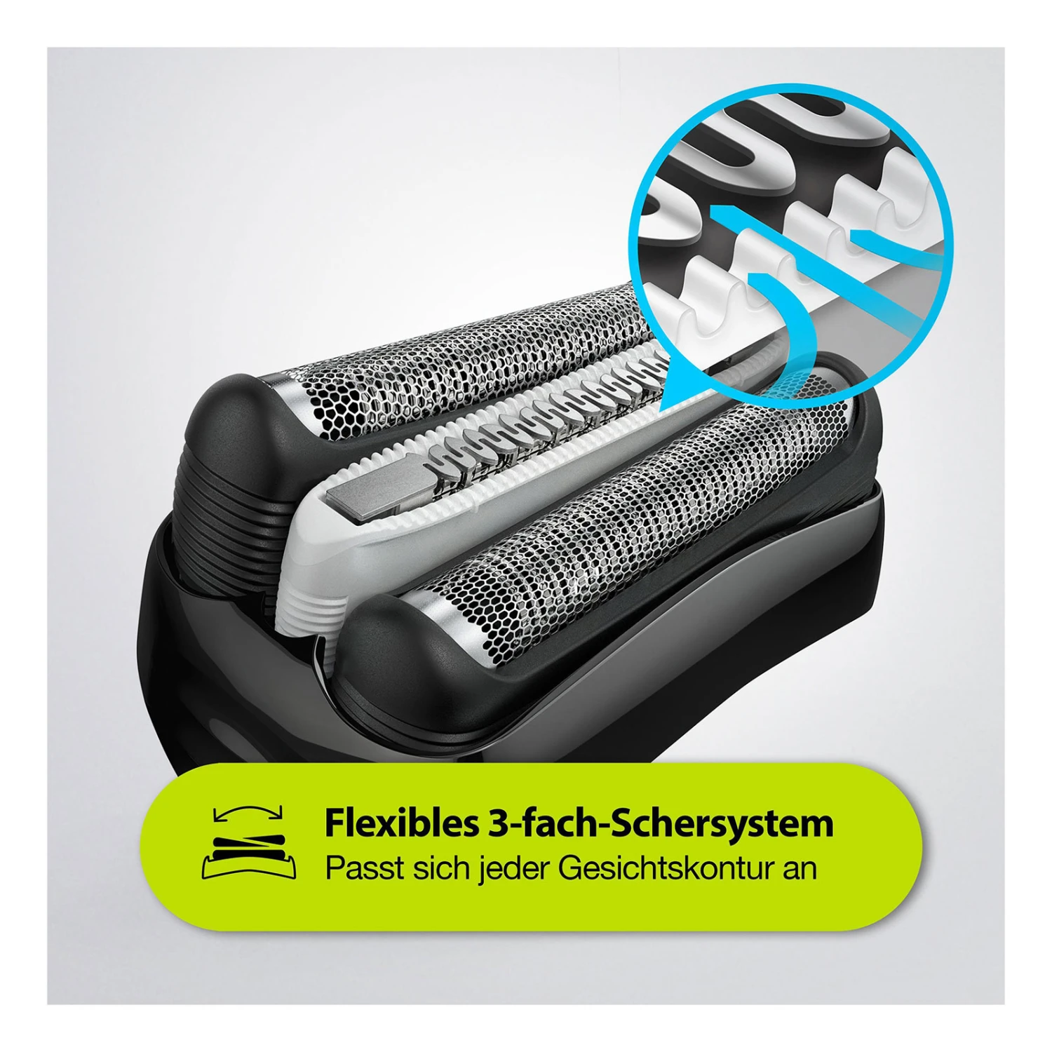- 3 flexible Klingen: Effizienz und Hautkomfort dank flexiblem 3-fach-Schersystem