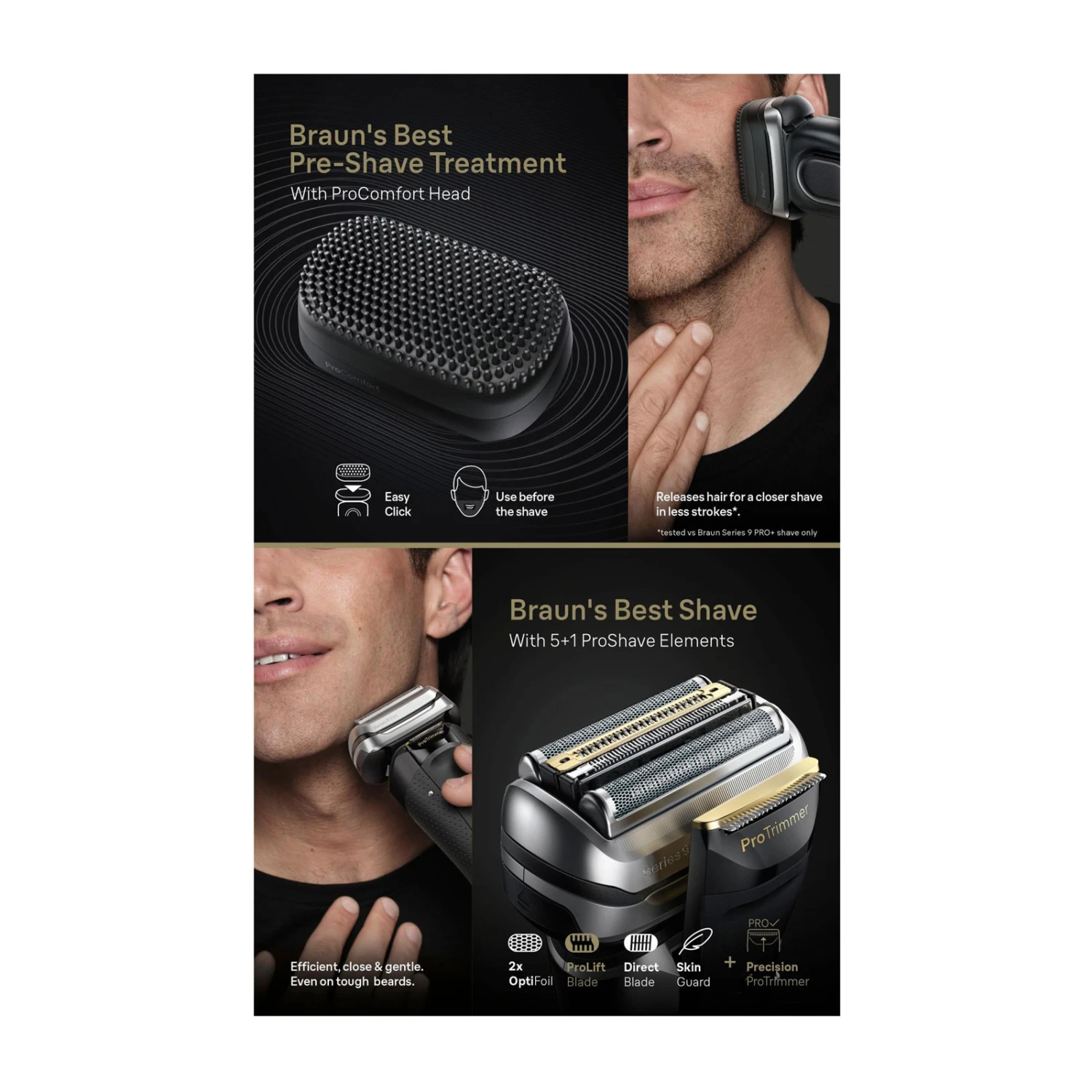 Erzielen Sie eine gründlichere Rasur als je zuvor¹ mit ultimativem Hautkomfort dank des Braun Series 9 Pro+ und dem rasurvorbereitenden ProComfort-Aufsatz.