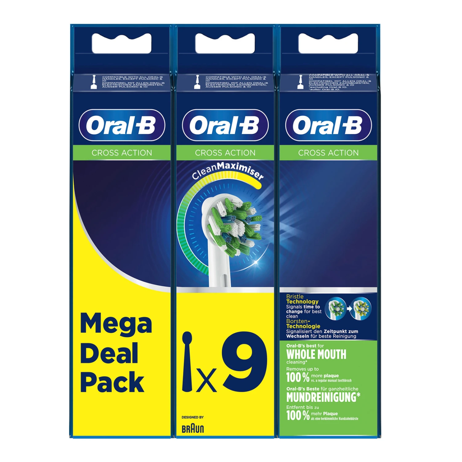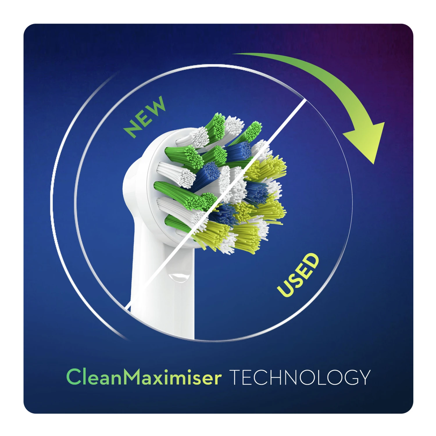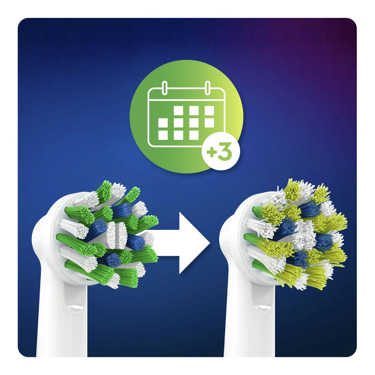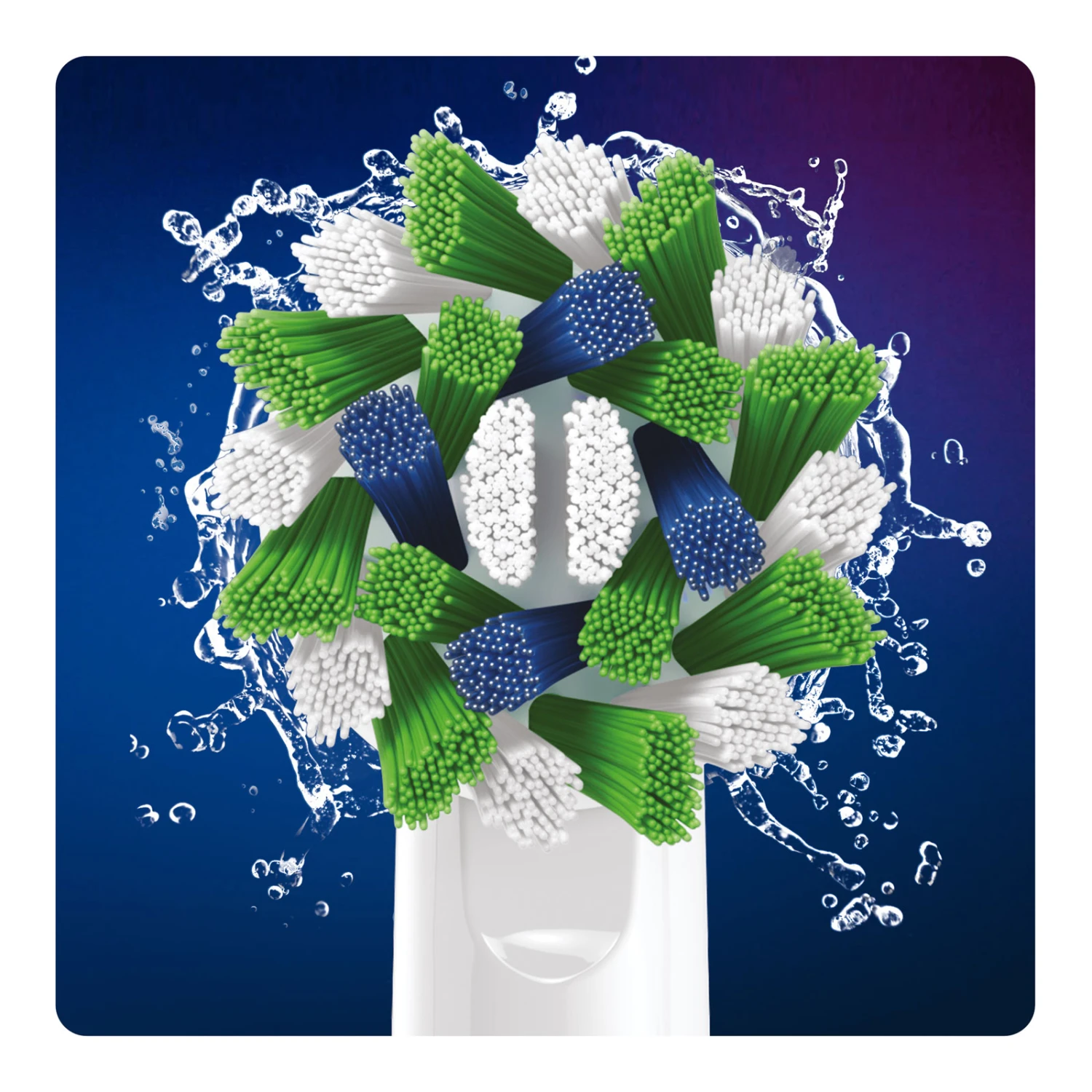 Oral-Bs Beste für ganzheitliche Mundreinigung. Die innovative CleanMaximiser-Technologie färbt grüne Borsten gelb und signalisiert so den optimalen Zeitpunkt zum Bürstenkopfwechsel für beste Reinigung. Die Premium CrossAction Aufsteckbürste verfügt über perfekt angewinkelte Borsten, um tief in die Zahnzwischenräume zu gelangen und bis zu 100 % mehr Plaque zu entfernen als eine herkömmliche Handzahnbürste. Kompatibel mit allen Oral-B Handstücken, außer Pulsonic & iO.