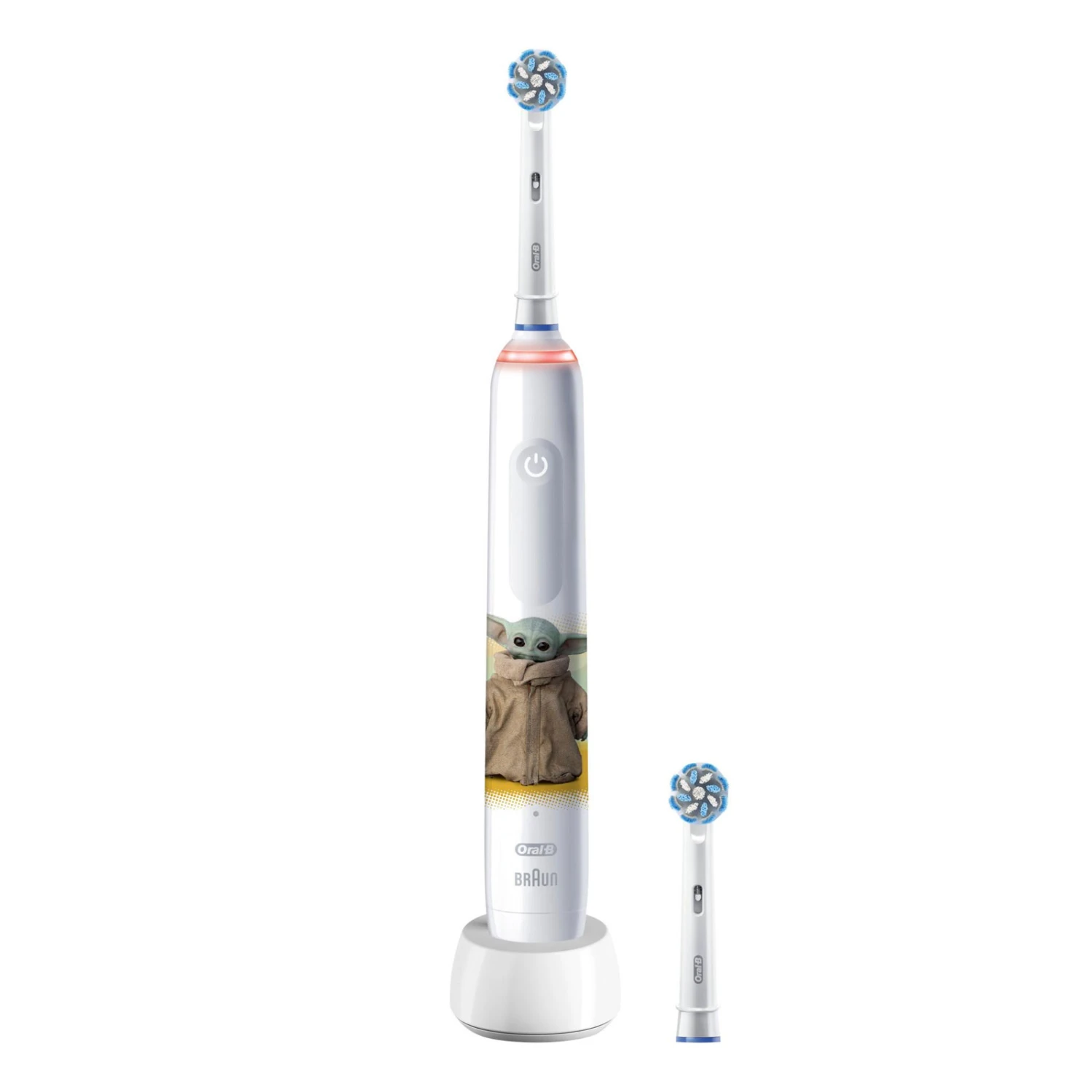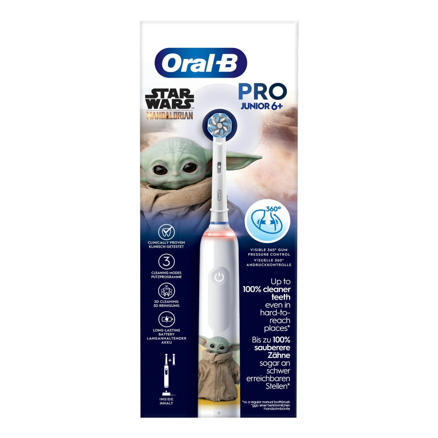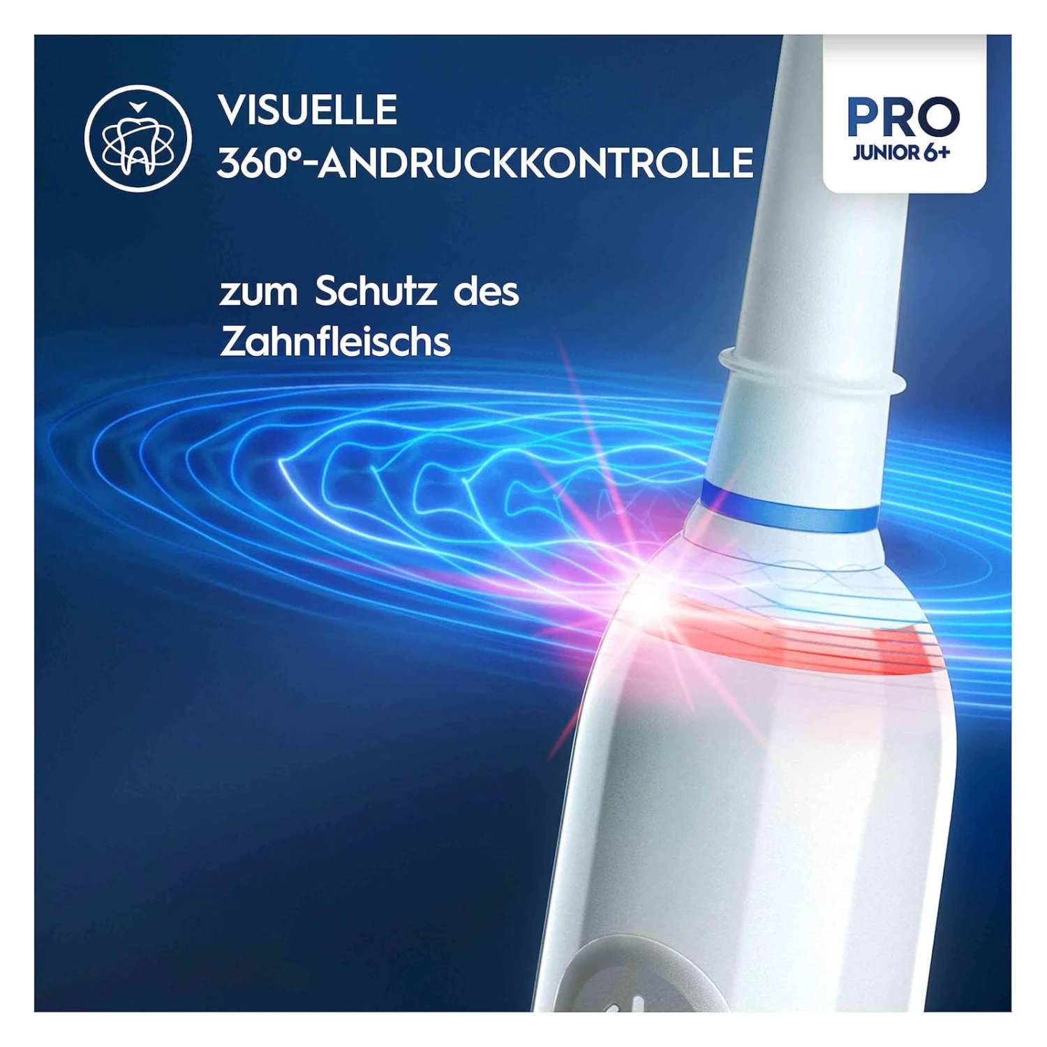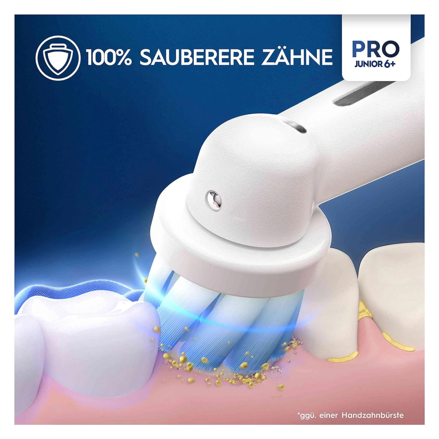 Die Oral-B Pro Junior Aufsteckbürste reinigt gründlicher als eine herkömmliche Handzahnbürste, um Karies zu bekämpfen.