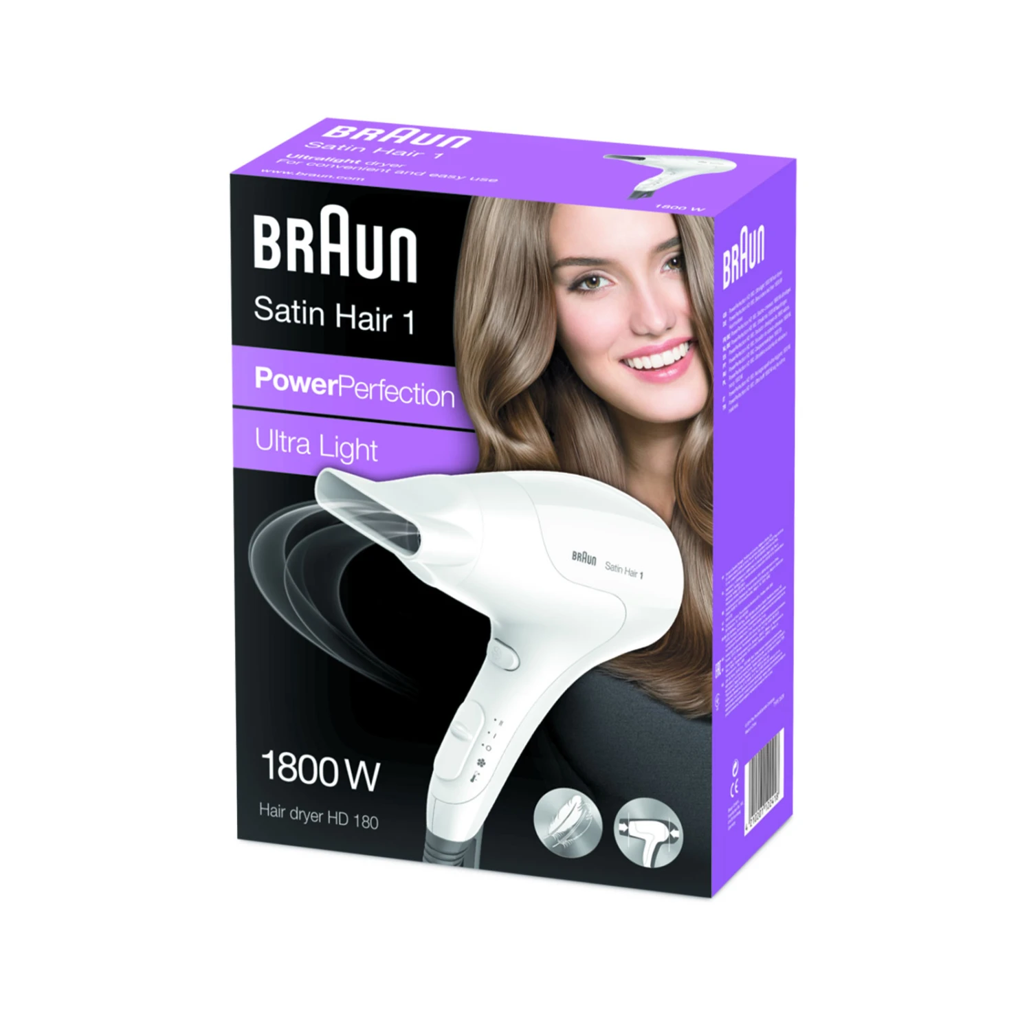 | Leichtes und ergonomisches Design. Für schnelles und leichtes Trocknen verbinden die Braun Satin Hair PowerPerfection Haartrockner hohe Leistung und Leichtigkeit zu Styling-Fähigkeiten ohne Kompromisse. Das einmalig leichte und ergonomische Design macht Styling besonders einfach und ermöglicht eine perfekte 360º-Rundumtrocknung. |