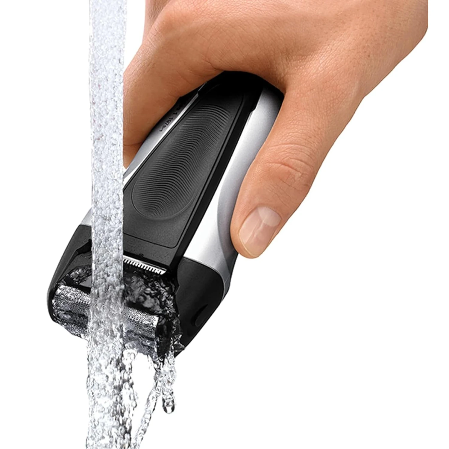 Erleben Sie eine gründliche Rasur mit dem BRAUN Series 1 170s-1 Herrenrasierer. Dieser netzbetriebene Rasierer bietet kabelgebundene Leistung für ein zuverlässiges und konsistentes Ergebnis. Dank seiner 100 % wasserdichten Konstruktion nach IPX7 können Sie ihn einfach unter fließendem Wasser abspülen und reinigen.