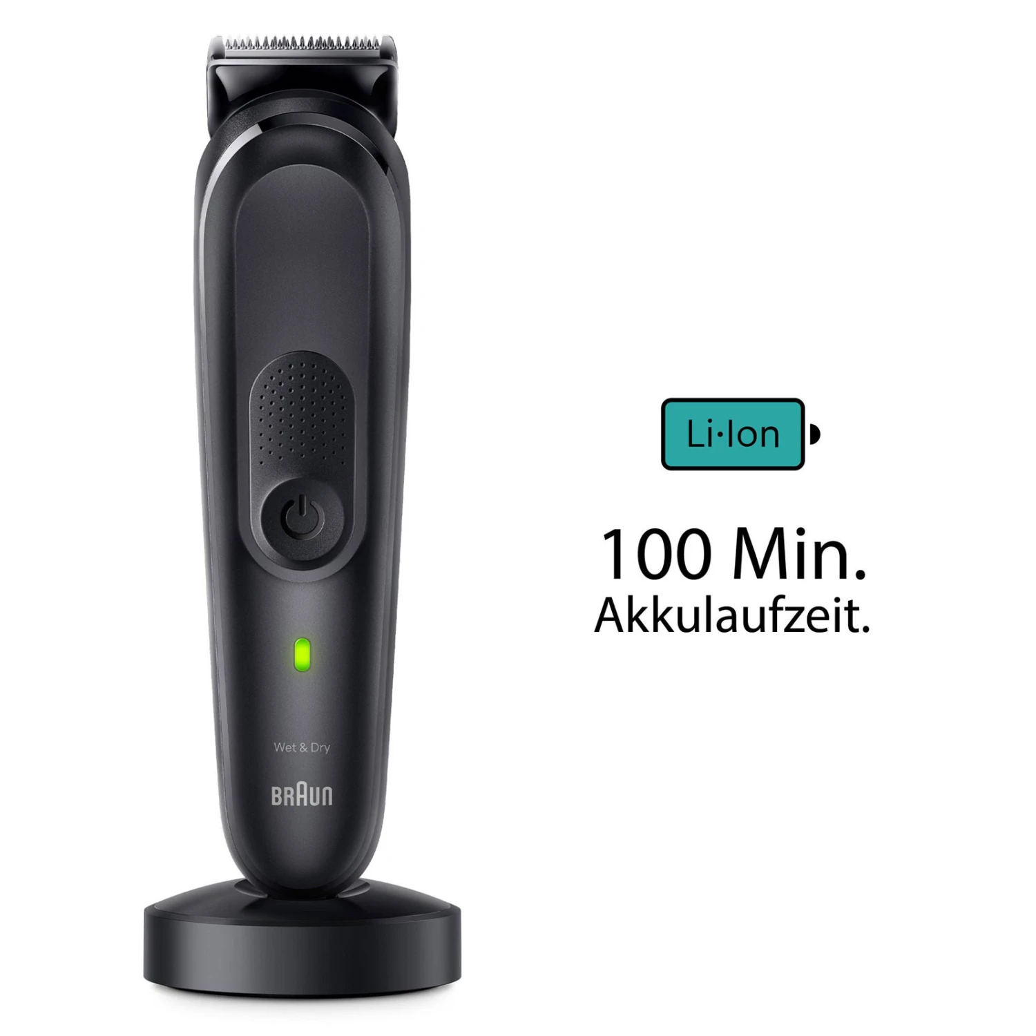 | Langlebig Dieses Körperpflege-Set für Herren verfügt über einen leistungsstarken Li-Ionen-Akku mit 100 Minuten kabelloser Laufzeit und lebenslang scharfen Klingen. |