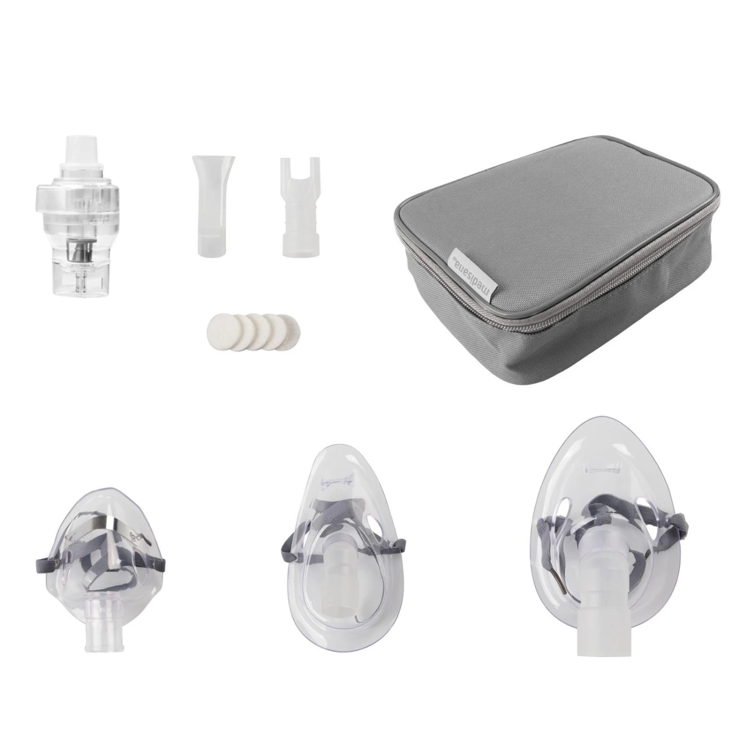 Mit dem medisana Inhalator IN 530 lässt sich die gesundheitsfördernde Inhalation sowohl mit Maske als auch mit Mundstück durchführen. Daher ist der Inhalator IN 530 problemlos auch für Kinder anzuwenden. Im Lieferumfang des Ultraschall-Inhalators IN 530 ist ein umfangreiches Zubehör enthalten: Zerstäuberflasche, Erwachsenenmaske, Kindermaske, abgewinkeltes Mundstück, Nasenstück, fünf Ersatzfilter, sowie ein praktischer Aufbewahrungsbeutel.