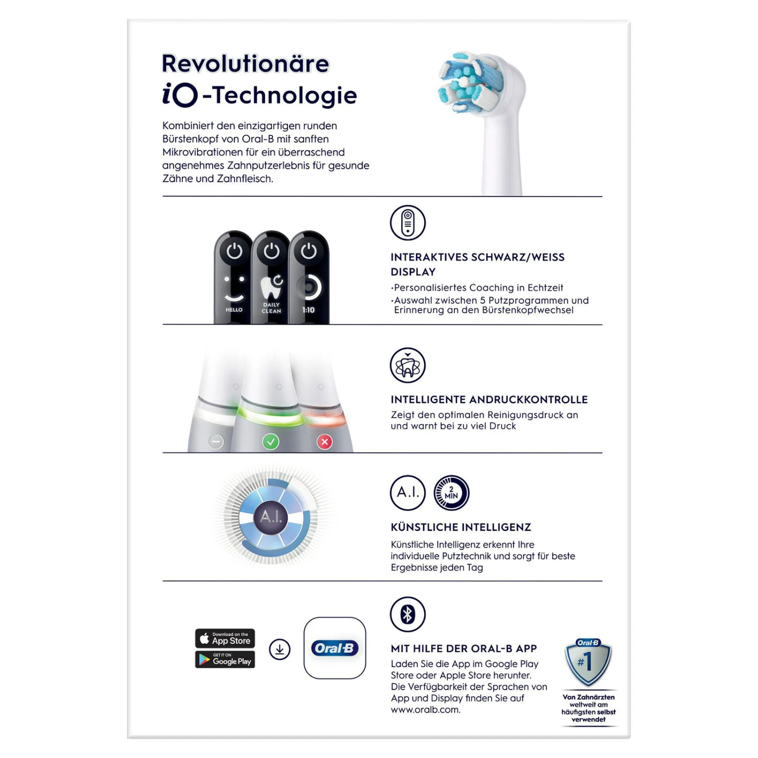 - Kombiniert den einzigartigen runden Bürstenkopf von Oral-B mit sanften Mikrovibrationen