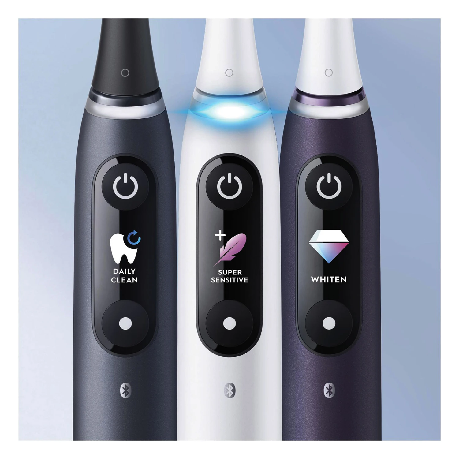- 6 Putzprogramme: Tägliche Reinigung, Sensitiv, Zahnfleischschutz, Intensive Reinigung, Aufhellen, Super Sensitiv