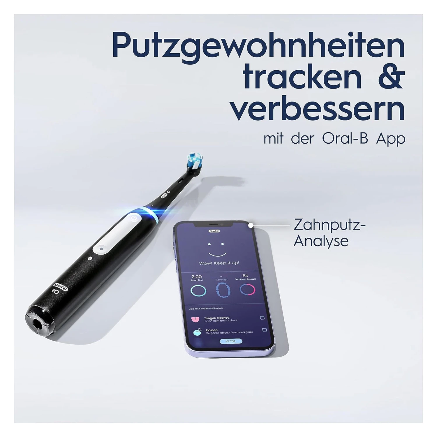 | Verbindung zur Oral-B APP Regelmäßig Putzgewohnheiten tracken & verbessern mit der ORAL-B APP basierend auf Analysen, bisherigem Putzverhalten und Zielen |