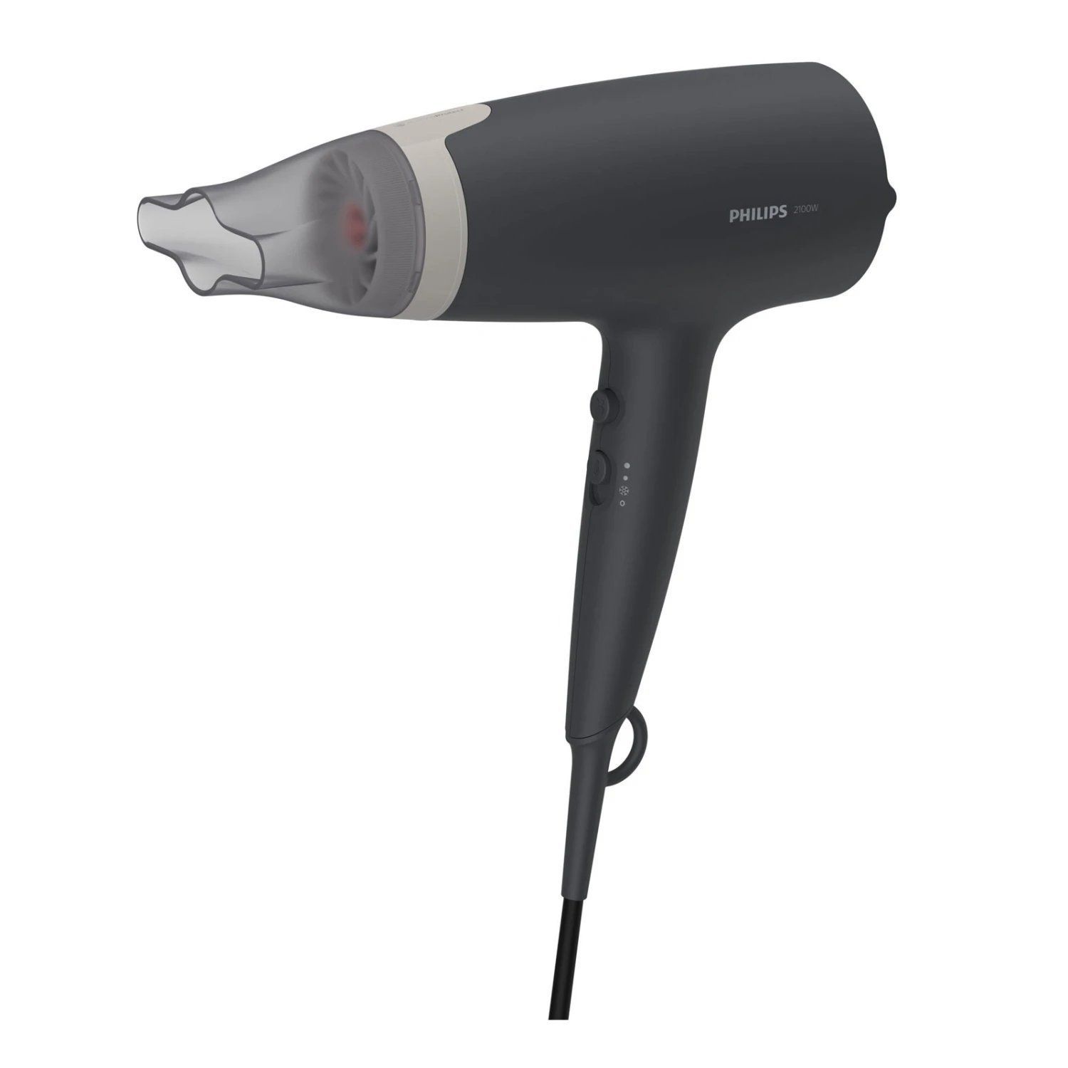 Der einzigartige ThermoProtect Aufsatz vermischt warme und kalte Luft für die tägliche Haarpflege.