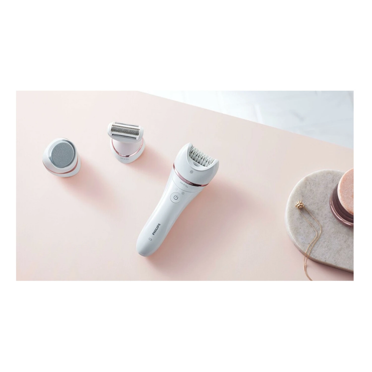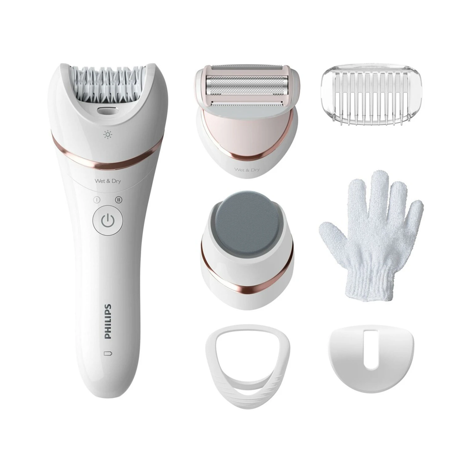 Genießen Sie Vorteile, die über das bloße Epilieren hinausgehen, mit einem kompletten Pflegeset.