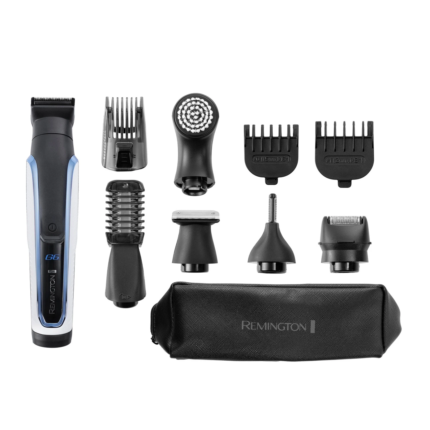 Der Graphite G6 Multigroomer PG6000 besitzt sechs Aufsteckköpfe: einen breiten Trimmer, einen vertikalen Trimmer für Nasen- und Ohrhaare, eine TST-Klinge für einen rasierten Look, einen MiniFolienrasieraufsatz, einen Bodyhair-Trimmer und eine Gesichtsbürste. Man kann mit nur einem Produkt die verschiedensten Körperpartien stylen.