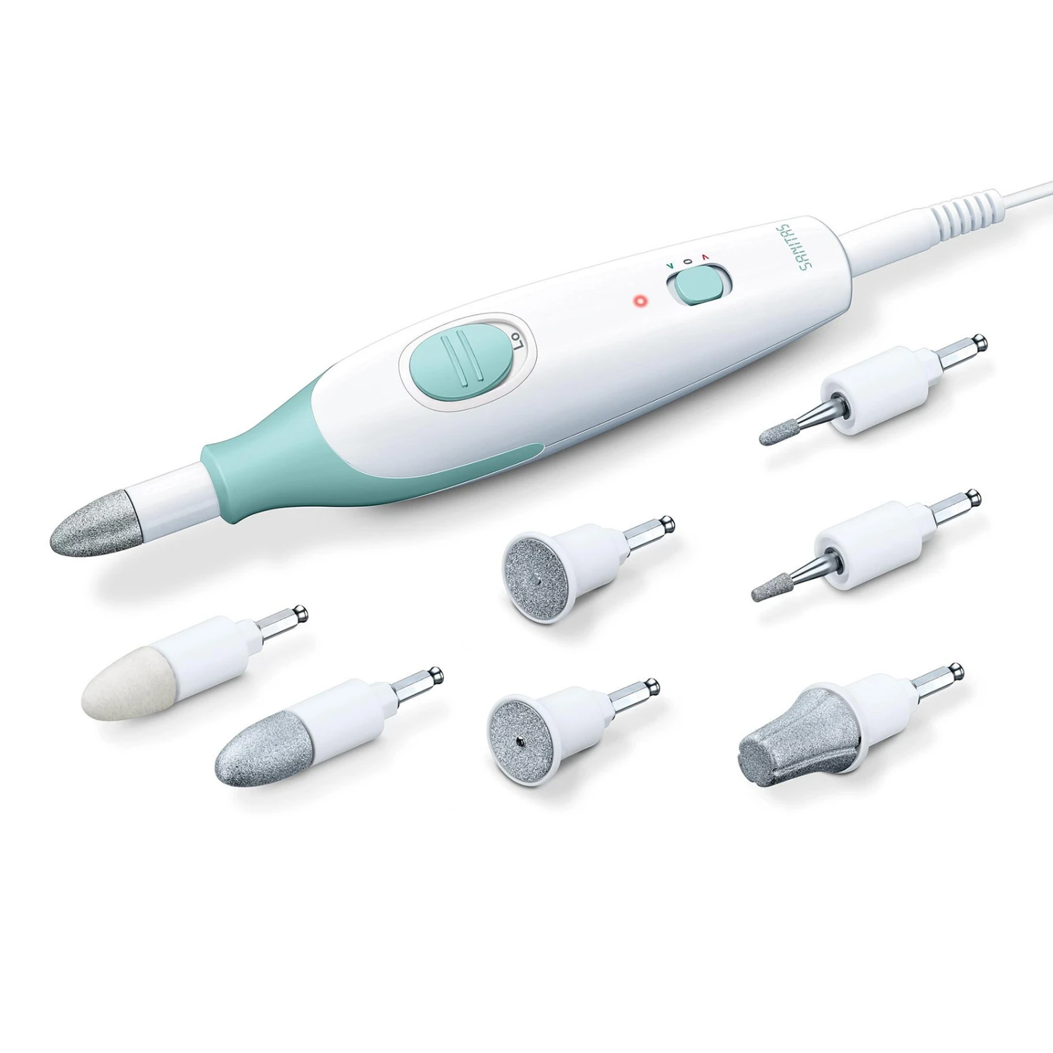 Das SMA 36 bietet eine professionelle Behandlung für die individuelle Fuß- und Nagelpflege. Die 7 hochwertigen Aufsätze aus Saphir und Filz bieten zusammen mit dem ergonomischem Design und der 2-stufigen Geschwindigkeitsregelung eine einfache Handhabung sowie perfekte Ergebnisse.