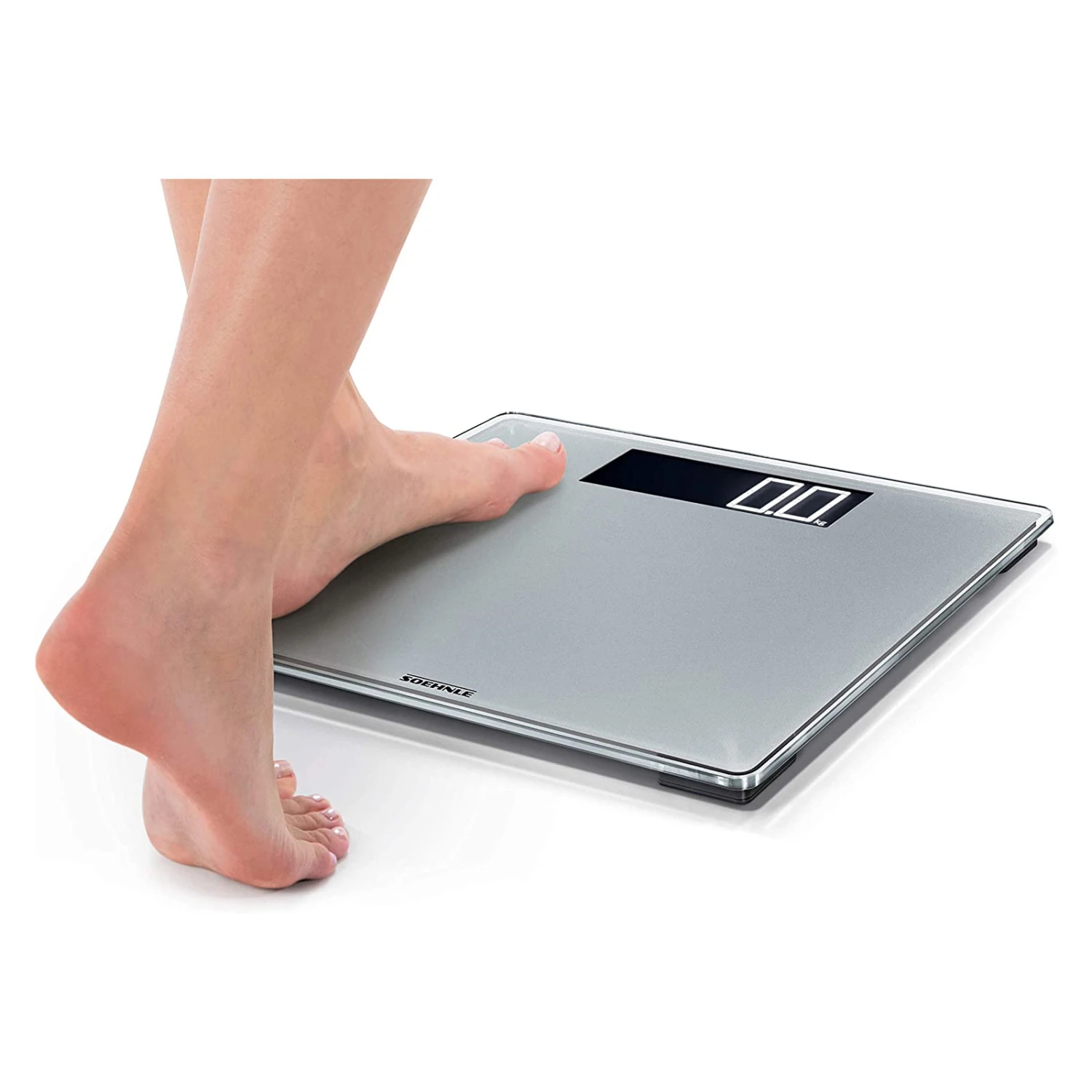 Endlich eine robuste Waage für die ganze Familie: Bis zu 200 kg zeigt die elegante Soehnle Personenwaage auf ihrem extragroßen Display an. Aber nicht nur Schwer-, auch Fliegengewichte sind auf der Style Sense Comfort 600 bestens aufgehoben dank der präzisen 100-g-Aufteilung. Besonders angenehm: Die extragroße, leuchtende LCD-Anzeige ist selbst bei schwierigen Lichtverhältnissen sehr gut lesbar und ergänzt gelungen das Design. Mit dem extraklaren Sicherheitsglas, das der silbrigen Optik einen brillanten Schimmer verleiht, der schlichten Form und dem flachen Design ist die Style Sense Comfort 600 ein zeitlos modernes Accessoire, das sich perfekt in jedes Badezimmer einfügt und gleichzeitig einen tollen Akzent setzt. Und natürlich punktet die Waage auch in Sachen Sicherheit: Damit Sie stabil stehen, besteht die extragroße Trittfläche aus besonders starkem Sicherheitsglas und ist mit rutschhemmenden Standfüßen ausgestattet. Auch ein Bücken ist nicht notwendig. Das Display schaltet sich direkt beim Betreten der Waage ein und nach dem Wiegen automatisch wieder aus. So halten die mitgelieferten Batterien selbst bei zweimal täglichem Wiegen bis zu drei Jahre.