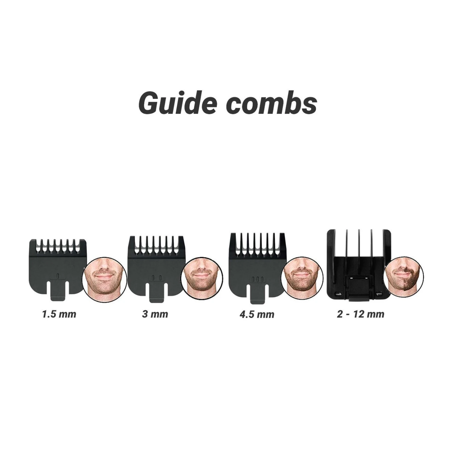 - Aufsteckkämme für 9 verschiedene Schnittlängen